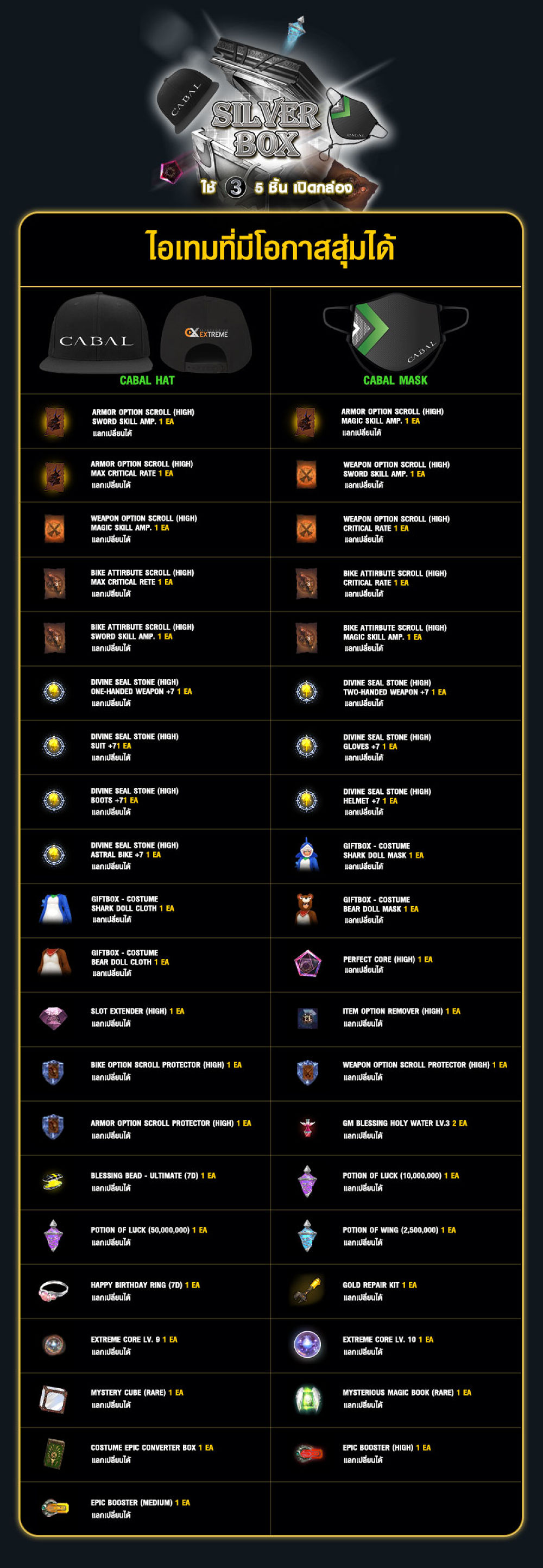 ลุ้นรับไอเทมฟรีทุกวันมากมาย พร้อมลุ้นรับของพรีเมี่ยมหน้ากากผ้าและหมวกลาย