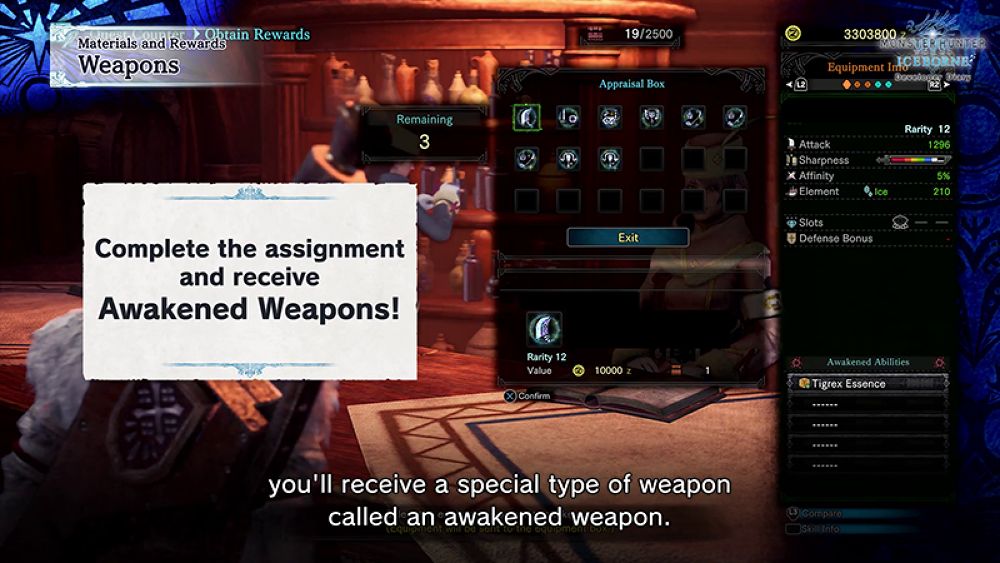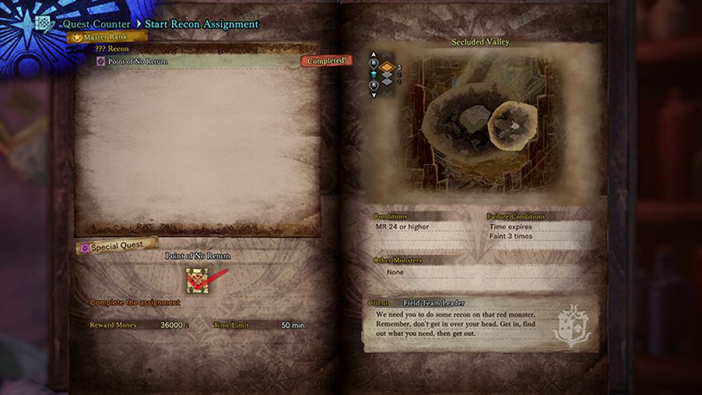 โดยการจะเผชิญหน้ากับมันในครั้งนี้เป็นการทำเควสที่เรียกว่า Recon Assignment ซึ่งเป็นการทำเควสเพื่อศึกษาข้อมูลและท่าโจมตีของมันก่อนจะเข้าสู่ Siege หรือเควสการล่าสเกลใหญ่แบบที่เคยล่ากับตัว Kulve Taroth เมื่อครั้งภาค World ซึ่งสิ่งที่ได้ทดลองมานั้นคือเจ้าตัวนี้เป็นร่างมังกรที่ค่อนข้างสมบูรณ์แบบ มีลำตัวสีแดงและสามารถปล่อยท่าพ่นไฟแนวยาวที่รุนแรงมากๆ อีกด้วย ที่สำคัญการลง Recon Assignment นั้นจะทำให้ได้รับเพชรสกิลและหินอัพเกรดไว้ใช้ในการพัฒนาชุดเกราะและอาวุธของเหล่านักล่าได้อีกด้วยและเควสนี้สามารถเข้าได้ตั้งแต่ระดับ MR 24 ขึ้นไป