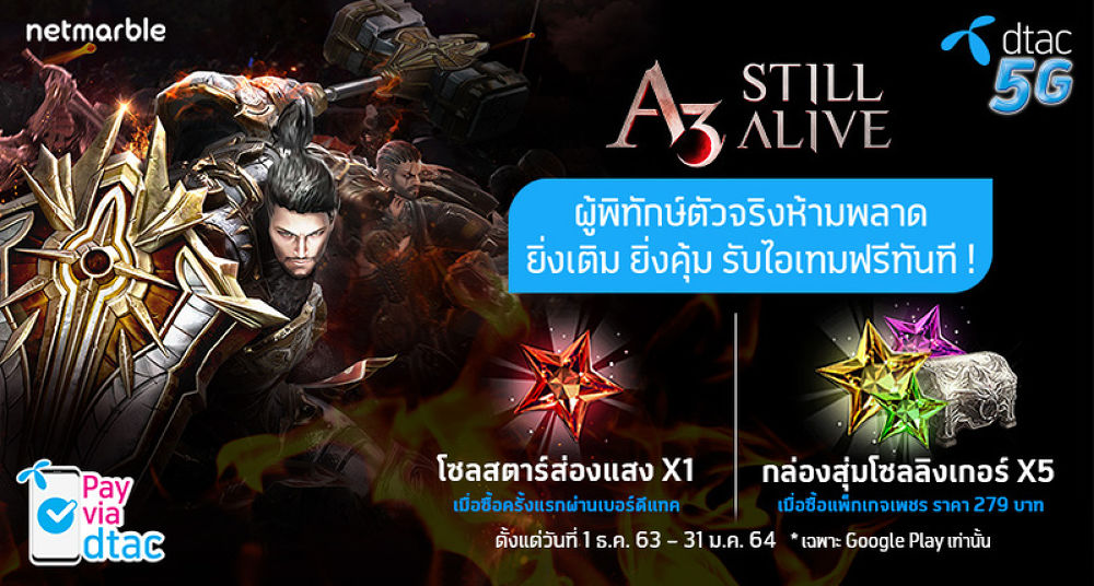 ลูกค้า DTAC มีเฮ! A3: Still Alive จัดโปรโมชั่นเอาใจนักรบผู้กล้า พร้อมไอเทมฟรีทันที!!