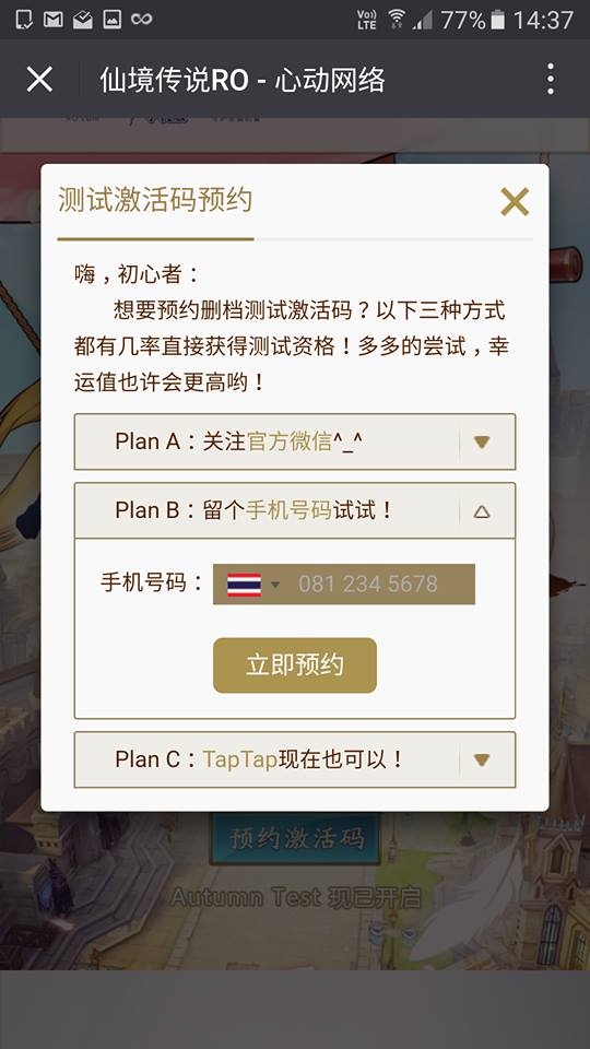 เลือกที่ Plan B ตามรูปและกดที่ธงชาติจีน เลือกเป็นธงไทยแล้วใส่เบอร์มือถือได้เลย