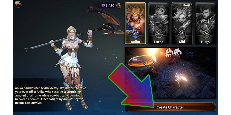 3. เลือกตัวละครที่ต้องการ จากนั้นกดปุ่ม Create Character ด้านล่าง