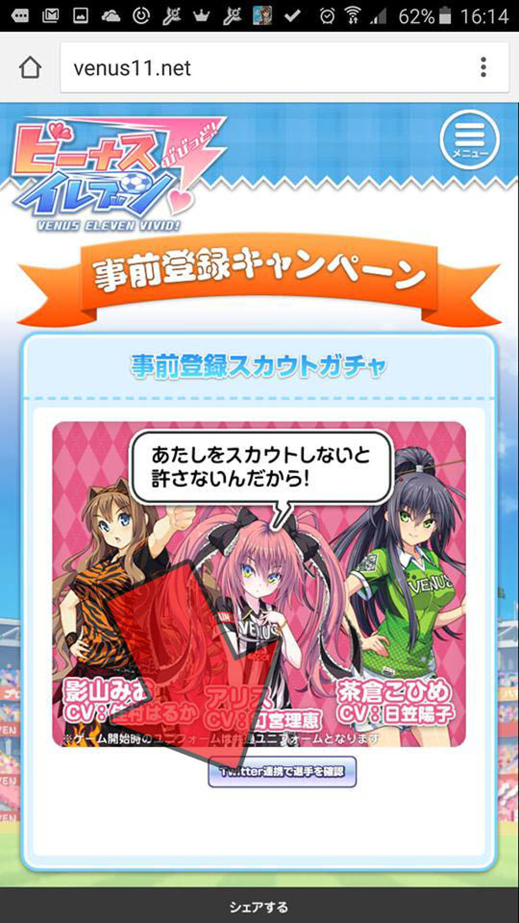 วิธีรับของลงทะเบียนล่วงหน้าด้วย Twitter ของเกม Venus Eleven Vivid ทำดังนี้