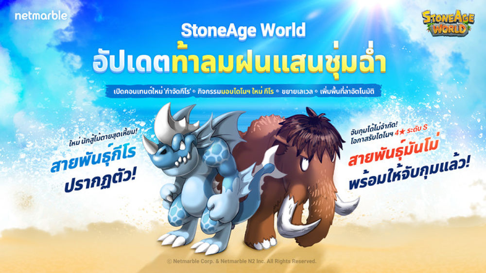 อัปเดตกันมาเรื่อยๆ สำหรับเกมสะสมสัตว์ในยุคประวัติศาสตร์อย่าง StoneAge World ที่ครั้งนี้ Netmarble ได้ประกาศเปิดตัวคอนเท้นต์ใหม่กับ "PvEกำจัดกีโร" ที่ให้ผู้เล่นที่มีเลเวล 90 ขึ้นไป เข้าร่วมต่อสู้กับกีโรเพื่อร่วมรับรางวัลมากมาย อาทิ หินวิญญาณสายพันธุ์กีโร, Exp และสโตน นอกจากนั้นยังมีการขยายเลเวลสูงสุด จากเดิม 109 เป็น 114 พร้อมกับ "พื้นที่ล่าอัตโนมัติ" ให้ผู้ฝึกได้ผจญภัยพร้อมกับเพื่อนๆ ไดโนฯ สุดน่ารักวันนี้