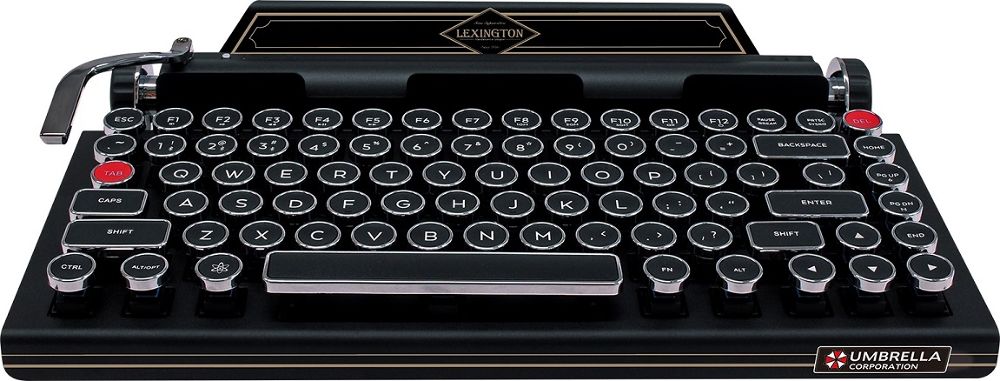 จะเป็นคียบอร์ดที่ถูกออกแบบมาให้เหมือนเครื่องพิมพ์ดีดที่ใช้เซฟเกมของซีรีส์นี้ ซึ่งสามารถเชื่อมต่อแบบสาย USB ได้ หรือ Bluetooth ก็ได้ด้วยเช่นกัน ที่สำคัญยังสามารถเชื่อมต่อกับมือถือสมาร์ทโฟนได้ด้วย อะไรจะเริ่ดขนาดนั้น และตัวคีย์บอร์ดเองยังมีลูกเล่นที่เหมือนกับเครื่องพิมพ์ดีดด้วยนะคะ รุ่นนี้สนนราคาอยู่ที่ราวๆ 75,000 เยน หรือตีเป็นเงินไทยอยู่ที่ประมาณ 22,514 บาท