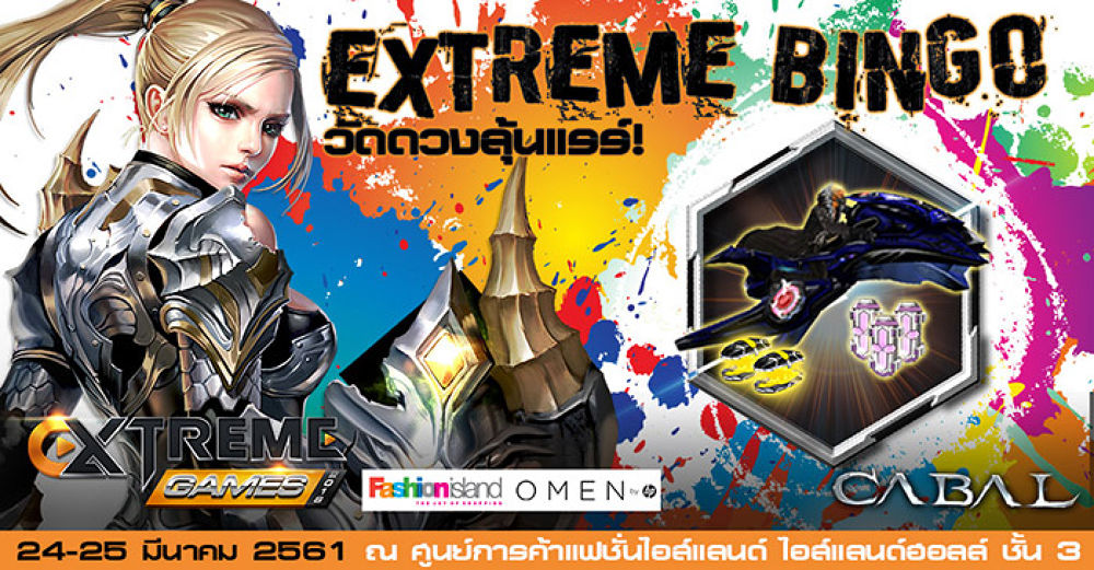 และเท่านั้นยังไม่พอในงานยังจัดให้ร่วมวัดดวงไปกับกิจกรรม Bingo เพื่อลุ้นรับของรางวัลสุดแรร์จากเกม Cabal มางาน Extreme Game 2018 มีแต่ได้ไม่มีเสีย แจกจัดหนักจัดเต็มกันขนาดนี้ รับประกันได้เลยว่าไม่มีใครกลับบ้านมือเปล่าแน่นอน!