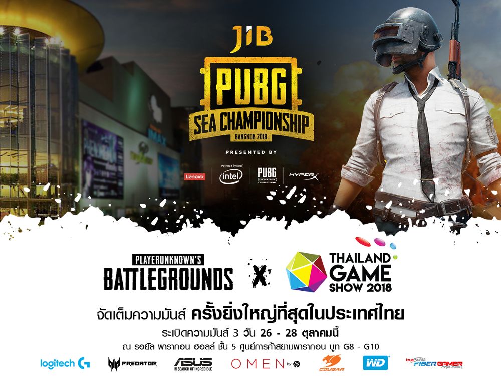 ใกล้เข้ามาทุกทีกับงาน Thailand Game Show 2018 ที่จะจัดขึ้นในวันที่ 26-28 ตุลาคม 2561 นี้ ณ รอยัล พารากอนฮอลล์ ชั้น 5 ศูนย์การค้าสยามพารากอน ที่มีไฮไล์เป็นการแข่งขันเฟ้นหาแชมป์ประเทศไทยและเอเชียตะวันออกเฉียงใต้ JIB PUBG SEA CHAMPIONSHIP BANGKOK 2018 ที่ถือได้ว่าเป็นงานแข่ง PUBG ที่ยิ่งใหญ่สุดในปีนี้