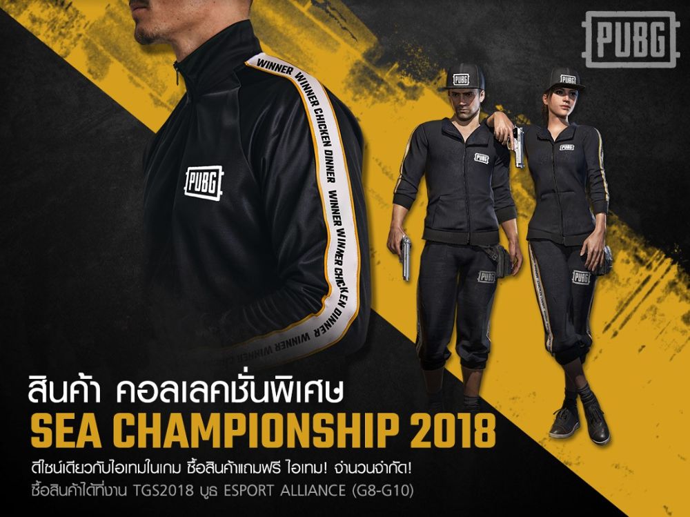 และครั้งแรกกับเปิดขายสินค้าลิขสิทธิ์แท้จาก PUBG ในงาน Thailand Game Show 2018 ที่ ออกแบบคอลเล็คชั่นพิเศษ สำหรับการแข่งขัน SEA championship 2018 โดยเฉพาะ เมื่อซื้อสินค้าภายในงาน ก็มีโปรโมชั่นพิเศษแถมฟรี ไอเทม SEA Championship เอาไว้ไปใส่ในเท่กันทั้งในเกมและนอกเกมกันเลย!!