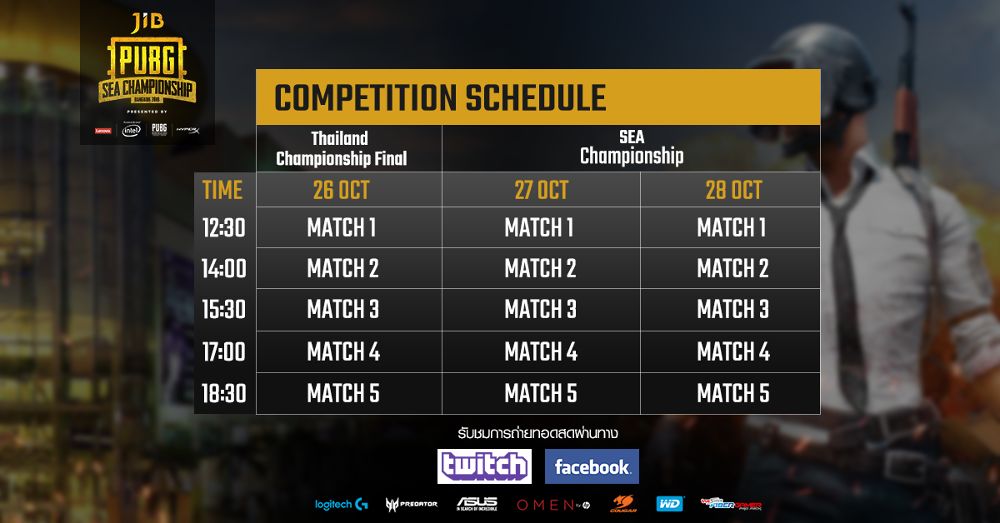• 26 ต.ค. 61 มาร่วมลุ้นกันว่าใครจะได้เป็นแชมป์ PUBG ประเทศไทย และเป็นตัวแทนประเทศไทยไปแข่งต่อเพื่อ กับการแข่งขัน PUBG Thailand Quialifier
