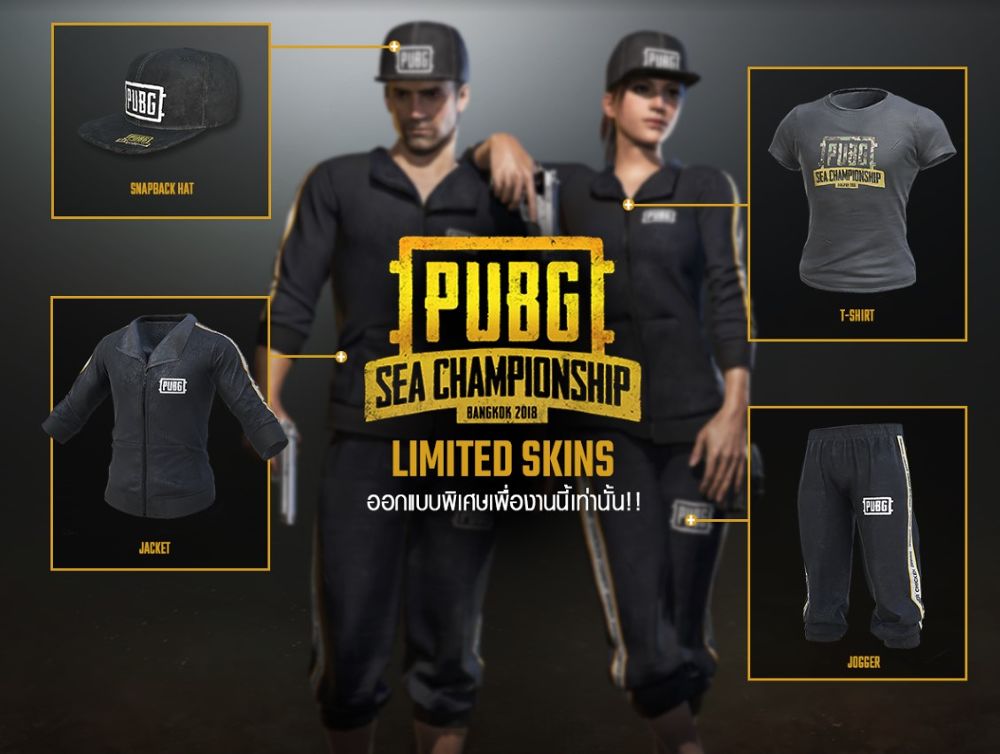 การแข่งขัน JIB PUBG SEA Championship BANGKOK 2018 ในครั้งนี้ PUBG ยังได้มีการออกแบบไอเทมชุดพิเศษ SEA Champ เพื่องานนี้โดยเฉพาะ!