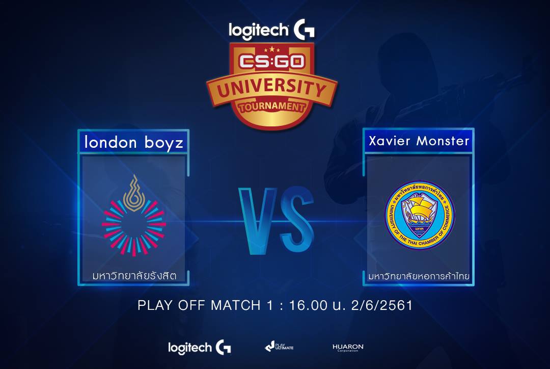 ผ่านพ้นไปแล้วนะครับสำหรับสัปดาห์แรกในรอบ 8 ทีมสุดท้ายของการแข่งขัน CS:GO ระดับมหาวิทยาลัย Logitech University Tournament Season 1 โดยจัดการแข่งขันไปเมื่อวันที่ 2-3 มิถุนายนที่ผ่านมา เป็นการแข่งขันในรอบ Playoff ในรอบวันที่ 2 มิถุนายนมีการแข่งขัน 2 คู่ ระหว่าง ทีม Londonboyz จากมหาวิทยาลัยรังสิต พบกับ ทีม Xavier Monster จากมหาวิทยาลัยหอการค้าไทย และทีม Dvorak จากมหาวิทยาลัยพระจอมเกล้าลาดกระบัง เจอกับทีม CM Power จากมหาวิทยาลัยเชียงใหม่