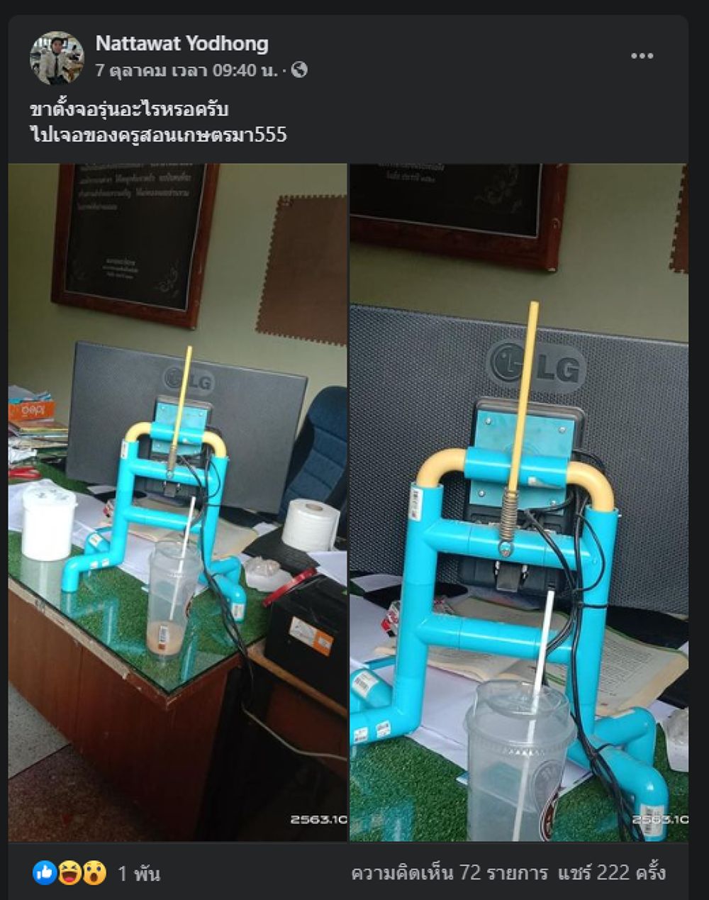 ตั้งโพสต์เผยเรื่องราวที่เขาได้ไปพบเจอในโต๊ะทำงานของครูสอนวิชาเกษตร ว่าจอคอมพิวเตอร์ของครูคนนี้ได้มีขาตั้งสุดแปลกตาที่เคยพบเจออย่างมาก! สามารถรับชมโพสต์ได้ที่ด้านล่างนี้