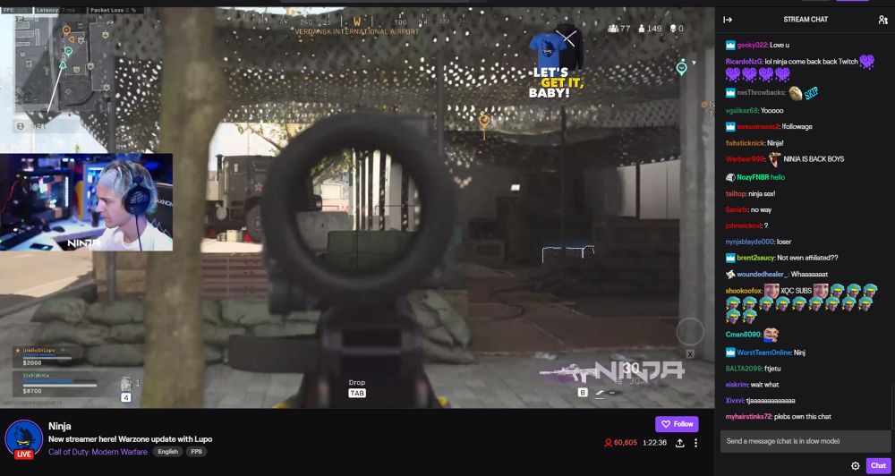 สำหรับการสตรีมดังกล่าวนี้ ทางคุณ Ninja ก็ยังได้พาสตรีมเมอร์ DrLupo มาเล่นในแมตช์รูปแบบคู่หู Duo ด้วยกันอีกต่างหาก (แถมนอกจากมีการเล่น Fortnite ก็ยังมีการเปลี่ยนไปเล่นเกม Call of Duty: Warzone ด้วย)  ซึ่งส่งผลให้เหล่าแฟนๆ ของ Ninja ได้เข้ามาคอมเมนท์รัวๆ ผ่านช่องแชทแบบตกใจกันหลายคนมาก! แถมหลังจากเขาได้ทำการถ่ายทอดสดไปเป็นเวลา 1 ชั่วโมง ก็ส่งผลให้มีเหล่าผู้ชมไม่ต่ำกว่า 6 หมื่นคนเลยทีเดียว ทำให้เห็นได้เลยว่าเหล่าแฟนๆ คงคิดถึงการสตรีมบน Twitch ของเขามากจริงๆ