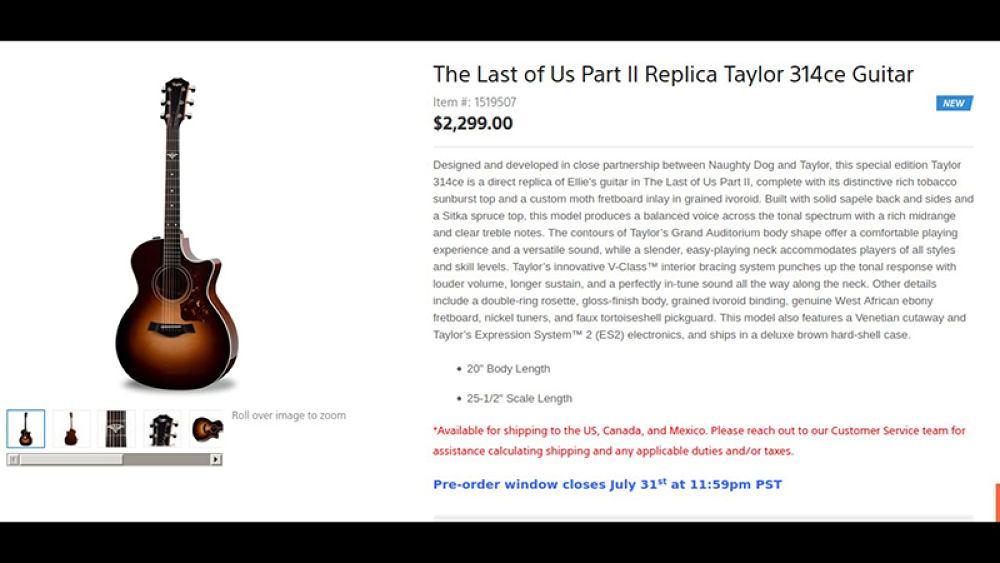นอกจากเพลงทั้ง 2 เพลงที่ถูกนำมาร้องในเกมแล้ว รู้หรือไม่ว่าเครื่องดนตรีหรือกีต้าร์ที่เป็นจุดเริ่มต้นของเกมๆ นี้ มีอยู่จริงและถูกขายจริงๆ ด้วย ซึ่งกีต้าร์ในฉากแรกของเกมที่ Joel ให้กับ Ellie นั้นคือยี่ห้อ Taylor รุ่น 314 ซึ่งราคาของมันค่อนข้างสูงมากๆ ประมาณ 50,000 - 70,000 บาท และสำหรับรุ่นนี้ก็มีการทำลวดลายเดียวกับในเกมออกมาขายจริงจังกันอีกด้วย โดยได้ขายในเว็บไซต์ของ PlayStation ในชื่อรุ่น Taylor 314ce The Last of Us Part II Replica สนนราคาอยู่ที่ประมาณ 71,000 บาท ถ้าใครเป็นคอกีต้าร์อะคูสติก และอยากเท่แบบ Joel และ Ellie ไปสั่งซื้อกันได้นะ