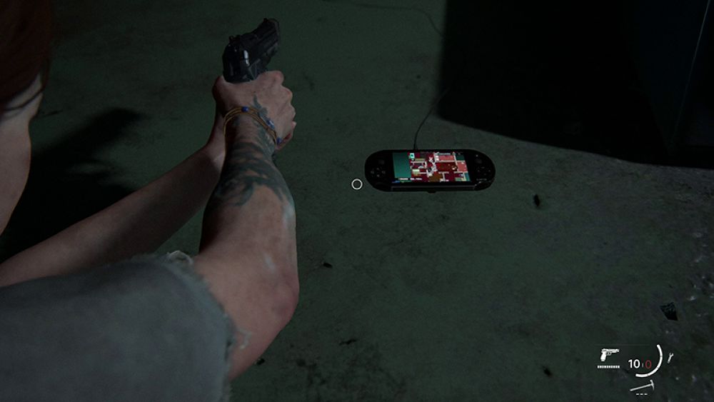 ถัดมาเป็นเครื่องเกมอีกเครื่องในเครือ PlayStation นั่นคือ PlayStation Vita ซึ่งเราจะเห็นเครื่องเกมนี้อยู่ประมาณ 2 ฉากด้วยกัน โดยฉากแรกเป็นฉากของ Ellie ที่บุกเข้าไปยังโรงพยาบาลเพื่อตามล่า Nora ในฉากที่เธอว่ายน้ำลอบเข้ามาแล้วสังหารสมาชิก WLF ที่กำลังนั่งเล่น PlayStation Vita อยู่ โดยภายในเกมที่เธอเล่นนั้นคือเกม Hotline Miami ผลงานเกม Action เลือดสาดภาพ Pixel จาก Devolver Digital