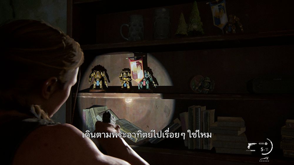 ถัดมาในฉากของ Abby ที่แอบหนีออกจากค่าย Serevena กับ Manny ถ้าสังเกตภายในบ้านซึ่งเป็นเส้นทางระหว่างการออกไปสู่เขตแดนศัตรูนั้น สังเกตที่ชั้นวางด้านขวาจะพบกับหุ่นจิ๋วทหารหลากชนิดซึ่งนั่นคือตัวหมากที่อยู่ใน Warhammer 40,000 ผลงานเกมกระดานและเกมวางแผนการรบชื่อดังของค่าย Games Workshop และไม่ใช่แค่ฉากนี้ฉากเดียว เรายังจะได้เห็นเจ้าหุ่นจิ๋วนี้ในฉากอื่นๆ เช่น ฉากที่ Ellie กำลังจะลงไปสู่เขต Capitol Hill หรือตึกๆ หนึ่งในฉากของ Abby และ Lev ไปเอายารักษาที่โรงพยาบาลของ WLF ก็จะเห็นทั้งกระดานของเกม Warhammer 40,000 อีกด้วย