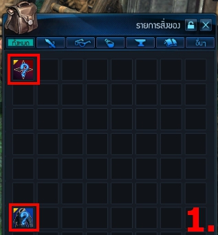 โดยเมื่อผู้เล่นได้รับ อาวุธ/ชุดเกราะ/เครื่องประดับ ที่เป็นสัญลักษณ์ [?] เหมือนในรูปด้านบน หากต้องการใช้ไอเทมชิ้นนั้น ให้ทำการคลิกขวาที่ไอเทมสวมใส่นั้นๆ (รูปที่ 1)