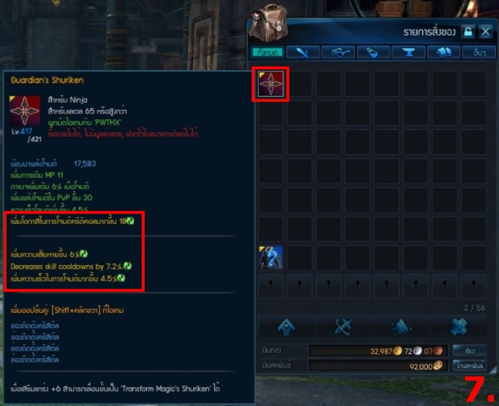 เมื่อกดยืนยันการเลือกออฟชั่นเสร็จปุ๊บ เราจะได้อุปกรณ์ที่ตอนนี้พร้อมสวมใส่แล้ว โดยออฟชั่นที่เลือกไว้ก็จะถูกใส่เข้ามาในของชิ้นนั้นๆ เพียงเท่านี้เราก็สามารถใส่ไอเทมชิ้นนั้นๆ ได้ตามปกติแล้ว (รูปที่ 7)