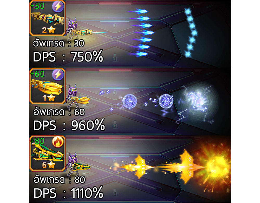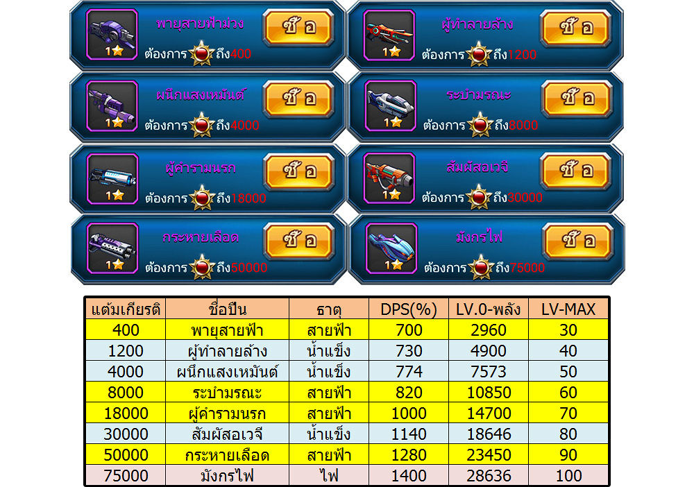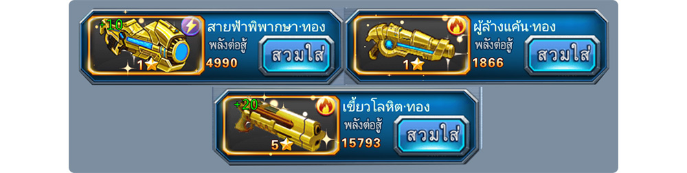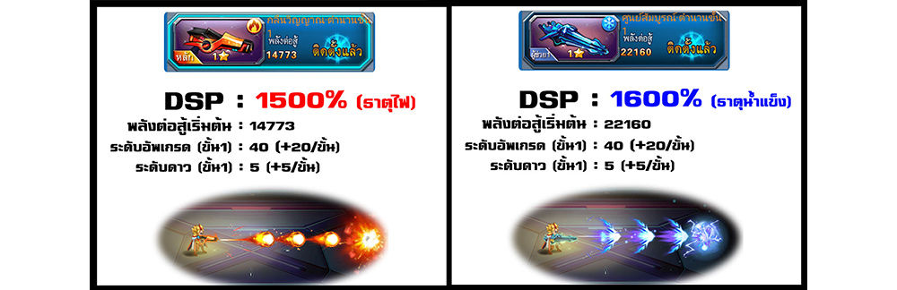 ► "ปืนแสงแห่งชัยชนะ(VIP1)" อัพเกรด30 จะเบากว่า "ปืนผู้ทำลายล้าง(1200P)" อัพเกรด40 ประมาณ1ดาว
