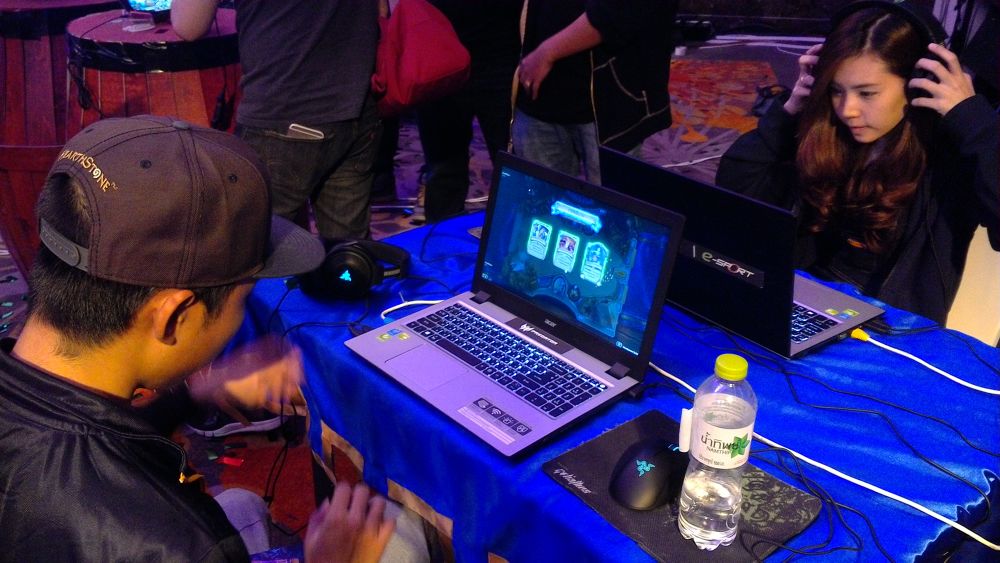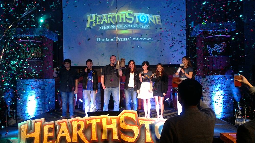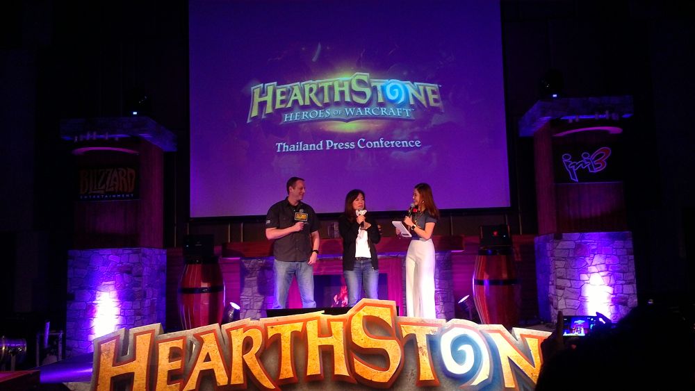 ตัวจริงเสียงจริงของผู้ให้กำเนิดเกม HearthStone(แมนๆ ซ้ายมือนะ)ภายในงานนี้ถือเป็นงานเปิดตัวที่เรียกว่ายิ่งใหญ่เอามากๆ เพราะถือเป็น งานแรกที่เราจะได้เจอและพูดคุยกับคุณ Jason Chayes หัวเรือใหญ่ของทีมพัฒนา Hearthstone ที่ไม่เคยออกงานไหนมาก่อนเลย แต่ในคราวนี้ ลงทุนบินมาเพื่อแฟนเกมเมอร์ชาวไทยโดยเฉพาะอีกด้วย และแน่นอนว่าในงานเปิดตัวครั้งนี้ คุณ Jason Chayes ก็ได้ออกมายืนยันความสนุกที่เกมเมอร์ชาวไทยจะได้สัมผัสสุดยอดเกมมือถือที่สมบูรณ์ที่สุด และที่เห็นจะเรียกเสียงฮือฮาในงานคงหนีไม่พ้นคลิปแรกที่คุณเจสันได้เตรียมเซอร์ไพร์เอาไว้นั่นคือตัวอย่างของเกม HearthStone เวอร์ชั่นภาษาไทยที่ไม่ใช่แค่แปลการ์ดอย่างเดียวนะ เพราะเราจะได้อรรถรสมากๆ ด้วยเสียงพากษ์ตัวละครและเนื้อเรื่อง รวมถึงบทสนทนาในขณะที่เรากำลังต่อสู้กันอยู่อีกด้วย น้องหมอกรองแชมป์คนไทยที่ล้มตัวเต็งอย่างจีนไต้หวันได้อย่างราบคาบก็มาในงานนี้ด้วยHearthstone เปนเกมการ์ดออนไลนแนวกลยุทธที่เล่นได้ฟรี และทุกคนสามารถร่วมสนุกไปกับเนื้อหาของเกมที่อ้างอิงจากตัวละคร และรูปแบบของมหากาพย์ Warcraft®ผลงานระดับตำนานของบลิซซาร์ด โดยผู้เล่นสามารถเลือกตัวละครจาก 9 ฮีโร และใช้ การ์ดต่างๆ จากสำรับ (Deck) ของผู้เล่นเพื่อใช้เวทมนตร์, อาวุธ หรือความสามารถต่างๆ และเรียกตัวละครที่แข็งแกร่งมาบดขยี้ฝ่ายตรงข้ามได ด้วยอาร์ตสไตล์ที่เป็นเอกลักษณ์แฝงไปดวยอารมณ์ขน และสุดยอดความสนุกของเกม Hearthstone จงมอบประสบการณสุดวิเศษให้กับผู้เล่นทกคน โดยเฉพาะผู้เล่นหน้าใหม่ที่จะสามารถเข้าถึงเกม และเล่นเกมได้ง่ายขึ้น
