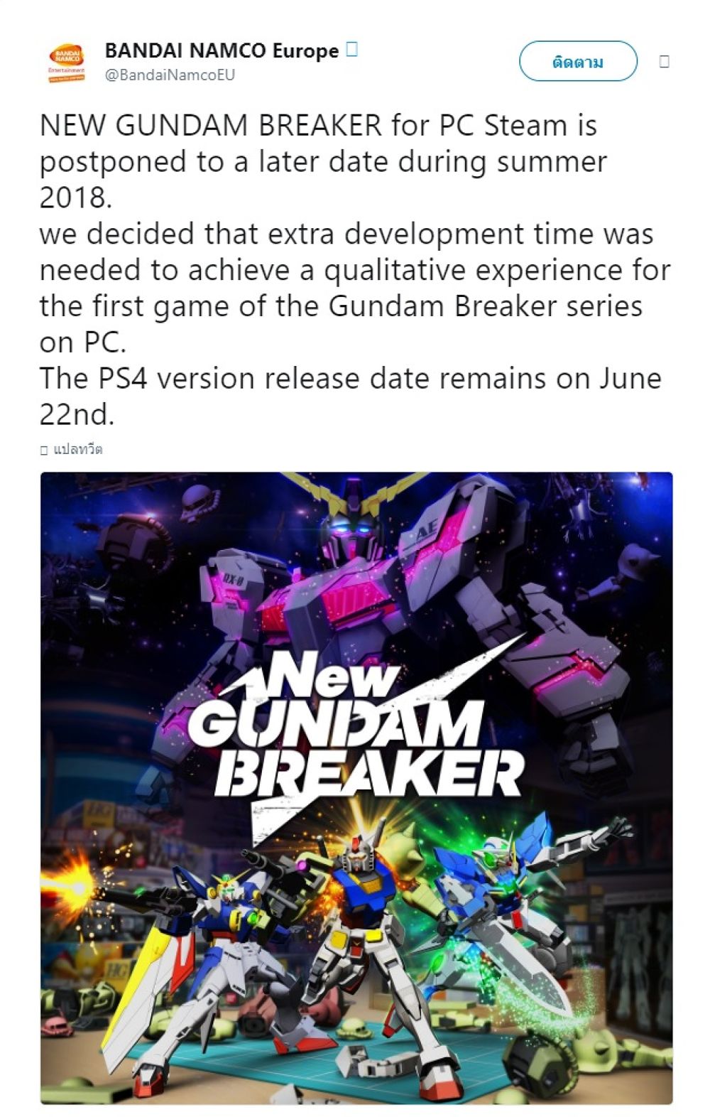 สงสัยดูท่าเกมเมอร์ PC คงต้องรอกันไปยาวๆ แล้วละค่ะ จากตอนแรกที่ช่วงปลายเดือนนี้จะได้ประกอบหุ่นกันดั้มไปยัดกันแล้วแท้ๆ ทาง