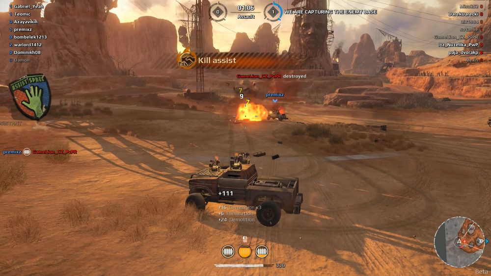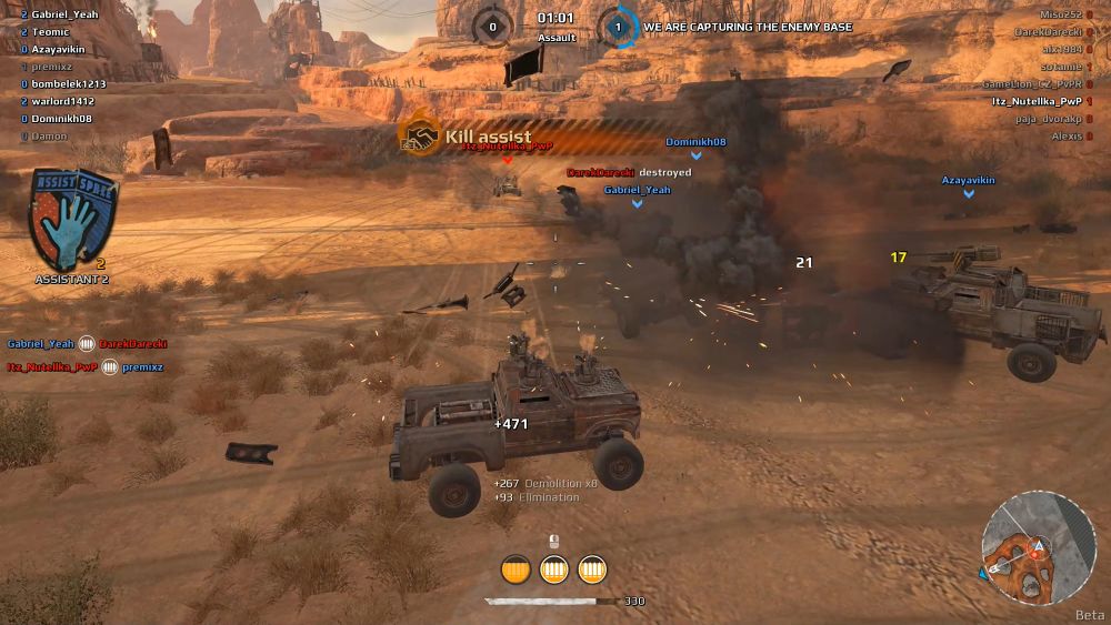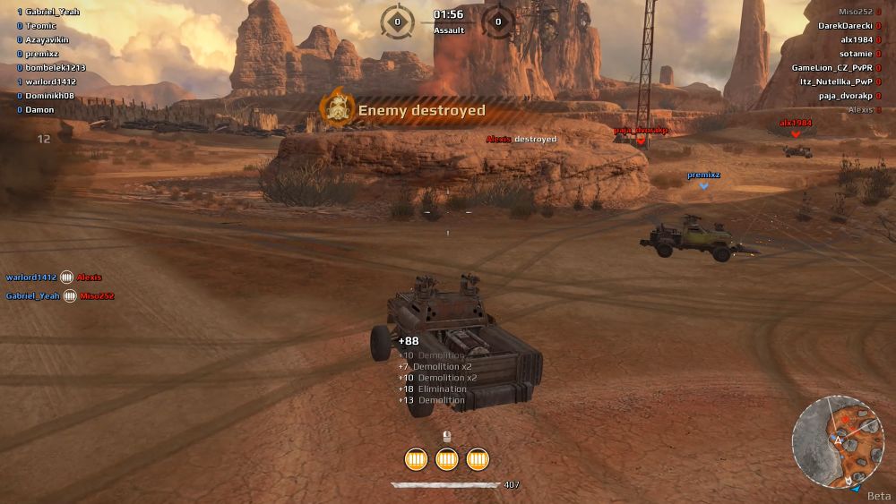 มาเปิดประเด็นนี้กันก่อนเลยครับ ว่าทำไมการเก็บเลเวล 1-10 จึงเป็นเรื่องสำคัญนัก คำตอบก็คือเพราะมันจะช่วยปลดล็อคผลตอบแทนที่คุณจะได้จากการเล่นโหมดเกม Battle ทั่วไปนั่นเอง เช่นหากคุณอยากปลดปืนประเภทลูกซอง ก็จะต้องมีเลเวล 3 เสียก่อน อยากได้ตัวถังรถก็ต้องเลเวล 5 เสียก่อนเป็นต้น ดังนั้นเป็นเรื่องสำคัญมาก หากคุณอยาก Build รถด้วยตัวเองครับ ดังนั้นรถเริ่มต้นของผู้เล่นอาจจะใช้แบบแปลนสำเร็จรูปที่มีอยู่ตาม Faction ของตัวเองเพื่อนำรถมาใช้ก่อนอยากได้อะไหล่แบบครบๆก็ต้องเลเวลถึง ถึงจะเล่นได้!แบบแปลนรถสำเร็จรูปจาก Factionsหากพูดถึงเกมแนว Casual แล้วแน่นอนว่าเกมเพลย์จะเป็นการเล่นแบบจบเป็นรอบๆไปนั้น บางโหมดอาจจะกินเวลามากกว่าปกติ ซึ่งทำให้ส่งผลกับความเร็วในการเก็บเลเวลอยู่แล้ว ดังนั้นนี่จึงเป็นคำถามที่ว่าโหมดการเล่นแบบต่างๆส่งผลกับความเร็วในการเก็บเลเวลหรือไม่ก่อนอื่นเลยคือตัวเกมนั้นจะสุ่ม Mission ขึ้นมาในทุกครั้งอยู่แล้วครับ โดยในส่วนของ Mission แต่ละรอบก็จะมีทั้ง Encounter , Assault หรือแตกต่างกันไป (ศึกษาโหมดการเล่นภายในเกมได้ที่นี่ : คลิก) แต่ระยะเวลาการเล่นแต่ละรอบนั้นจะถูกจัดไว้ที่ไม่เกิน 3 นาทีอยู่แล้ว ดังนั้นไม่ต้องห่วงครับ ใช้ระยะเวลาการเล่นต่อรอบไม่นานเกินนี้แน่นอน แต่หัวข้อถัดไปนี่ละที่จะเป็นปัจจัยว่าเราจะเก็บเลเวลได้เร็วหรือไม่ ?โหมด Assault ยึดจุดจะใช้เวลายืดเกมนิดนึงเอาล่ะมาถึงประเด็นสำคัญแล้วล่ะครับที่จะเป็นตัวชี้วัดว่าเราจะเก็บเลเวลไวหรือไม่ ในทุกการเล่นของเรานั้น แน่นอนว่าเราต้องขับรถคู่ใจของเราออกรบราฆ่าฟันกับศัตรูยิงกันแหลกลาญราวกับบู๊อยู่ในโลกของภาพยนตร์เรื่อง Mad Max ซึ่งการฆ่าได้หรือการช่วยเหลือการฆ่า ตรงนี้แน่นอนว่ามีผลกับ EXP ที่เราจะได้ด้วย การยิงโจมตีศัตรูและการหลบเลี่ยงการโจมตีจากศัตรูนั้นส่งผลกับ EXP ที่ได้มากกว่าที่คิดเลยทีเดียวครับ ดังนั้นสิ่งนี้ต้องมีฝีมือเข้ามาเอี่ยวด้วยเต็มๆ สำหรับผู้เล่นมือใหม่ที่มักจะถูกจับ Matchmaking มาเจอกันเอง สิ่งสำคัญคือคุณต้องควบคุมรถของตัวเองให้เชี่ยวชาญพอสมควร เพื่อสร้างมุมการโจมตีที่เหมาะสม และหลบการโจมตีจากศัตรูด้วยนั่นเองและการทำดาเมจใส่รถของฝั่งตรงข้าม ยิ่งทำได้มากเท่าไรก็ยิ่งส่งผลกับ EXP ตอนจบเกมมากขึ้นเท่านั้น รวมไปถึงการได้รับดาเมจจากศัตรูที่น้อยมากด้วย และการฆ่าศัตรูได้ หรือไม่ได้ก็ส่งผลเช่นกัน หากคุณ Kill ศัตรูได้ก็ได้ EXP มากขึ้นด้วย แต่ถ้าได้ Assist แทนการฆ่าก็จะได้น้อยลงนั่นเอง ดังนั้นเกมนี้อาจจะมีปัญหาเรื่องการ Last Hit กันนิดหน่อยละนะ (ฮา)แน่นอนว่าถ้าตา