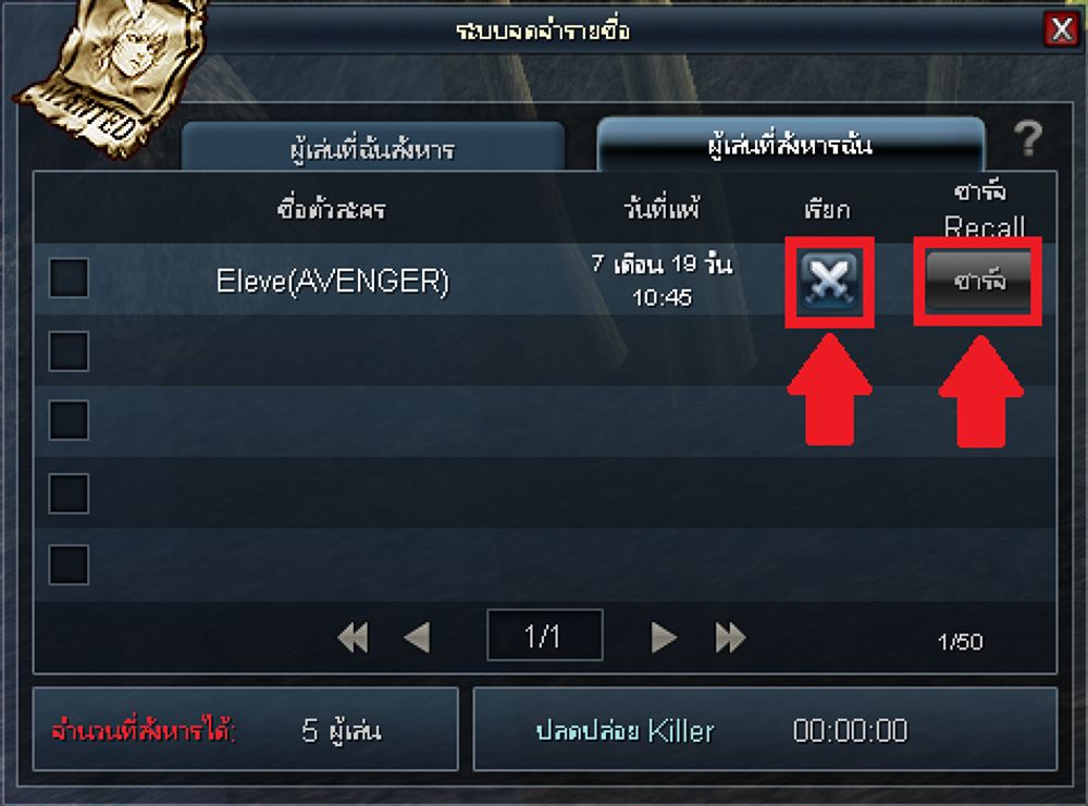 ทั้งนี้ผู้เล่นที่ทำการสังหารผู้เล่นที่อยู่ในรายชื่อ “ผู้เล่นที่สังหารฉัน” และการสังหารผู้เล่นชื่อสีแดง จะไม่ติดโทษใดๆ