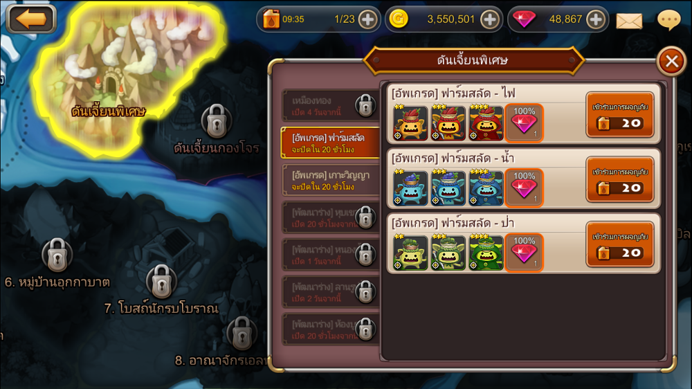 เก็บรวบรวมวัตถุดิบในการอัพเกรด และพัฒนาร่างตัวละครให้แข็งแกร่ง รวมไปถึงเหมืองทองที่จะช่วยให้คุณหาทองได้ง่ายขึ้น