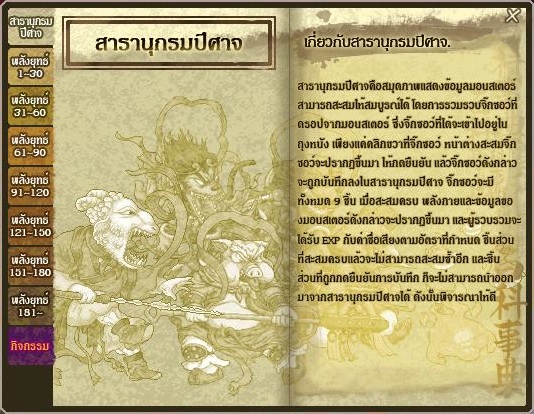 สารานุกรมปีศาจ : กำจัดเหล่ามอนสเตอร์ เก็บตัวต่อจิ๊กซอว์ของมอนสเตอร์ครบ 9 ชิ้น ได้รับค่าประสบการณ์มากมาย และยังได้รับค่าชื่อเสียงอีกด้วย