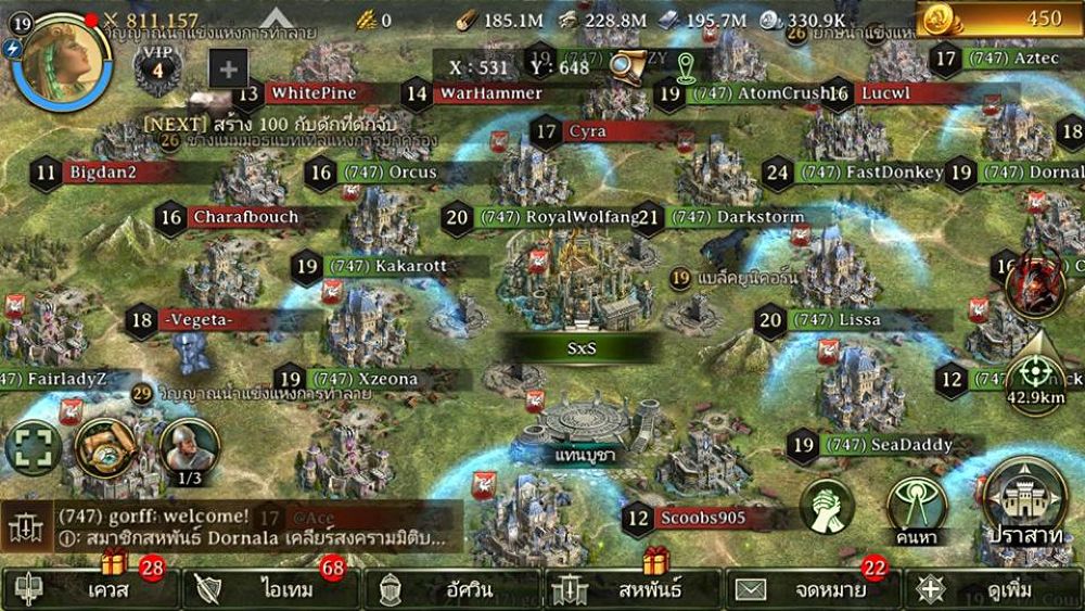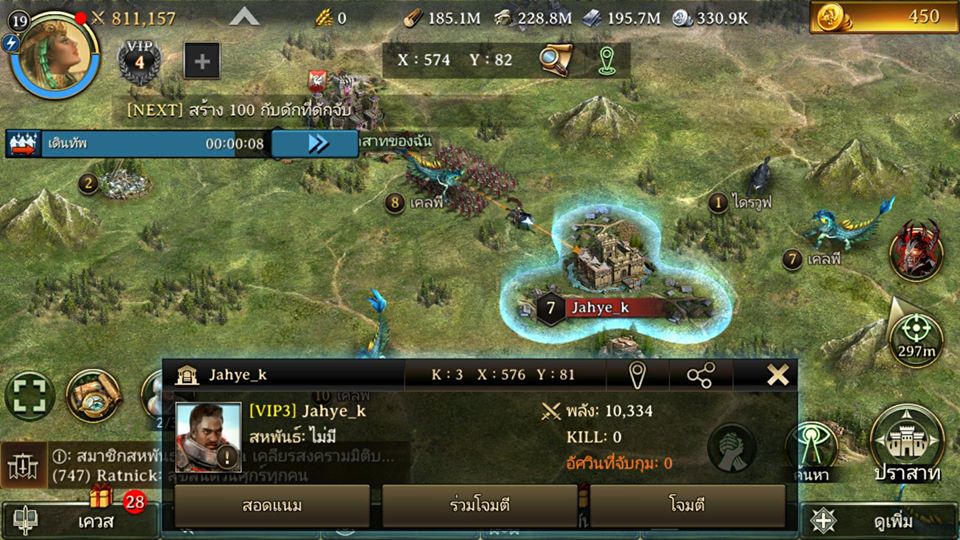 - นอกจากนี้ยังสามารถดูมอนสเตอร์และเมืองยิบย่อยในแผนที่ เพื่อต่อสู้เก็บเกี่ยวทรัพยากรณ์ หรือจะบุกทำลายเมืองของผู้เล่นอื่นๆก็ทำได้!