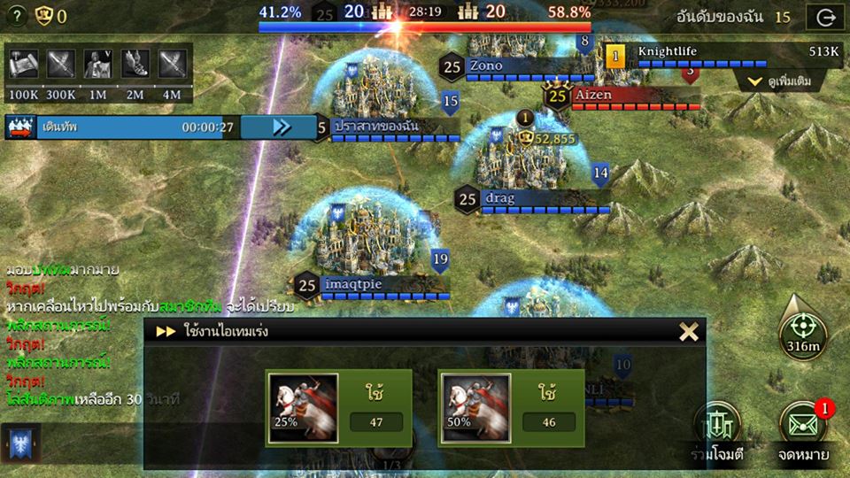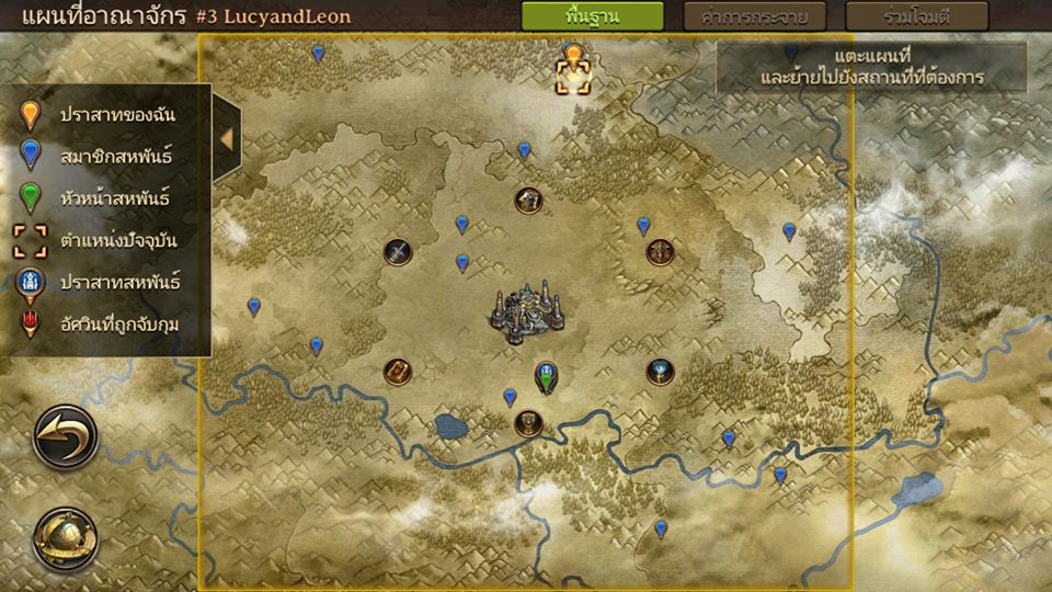- ใน Iron Throne ดินแดนทั้งหมดจะตั้งอยู่บนโลก Open World อันกว้างใหญ่ อาณาจักรของผู้เล่นจะอยู่กระจัดกระจายกันไปแต่เดินทางไปมาหาสู่กันได้ เพียงแค่รู้พิกัดของที่ตั้งเมือง ซึ่งเราสามารถแชร์พิกัดของตัวเองให้เพื่อนที่เล่นด้วยกัน หาเจอได้ง่าย หรือให้ชาวบ้านมาตีเราเละเทะก็ได้นะ (ฮ่าๆ)