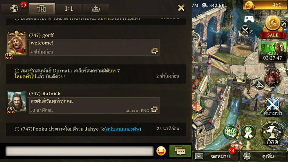 - Iron Throne จะเปิดให้บริการแบบ Global ซึ่งจะเจอกับคนทั่วโลกที่เข้ามาอย่างแน่นอน เพราะงั้นเรื่องภาษาจะไม่ใช่กำแพงวัฒนธรรมอีกต่อไป เพราะเกมนี้ สามารถกดแปลภาษาอัตโนมัติได้!! เช่นคนอื่นพิมพ์ เกาหลี จีนมา เราก็สามารถกดแปลและทำความเข้าใจประโยคได้ง่ายดาย (เช่น เราเลือกภาษาไทยแต่อีกฝั่งพิมพ์เกาหลีมา เมื่อกดแปลก็จะเป็นภาษาไทย)