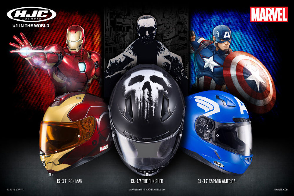 โดยทางแบรนด์ HJC ได้ประกาศเปิดตัวหมวกรุ่นใหม่ที่ได้ลิขสิทธิ์ตัวละครต่างๆจาก Marvel มาทำลวดลายบนหมวก โดยมีตัวละครต่างๆมาแจมดังนี้