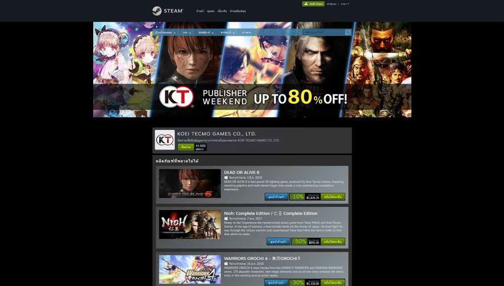 ที่มาข่าว และ ภาพ: https://store.steampowered.com/sale/koei-tecmo-publisher-weekend/