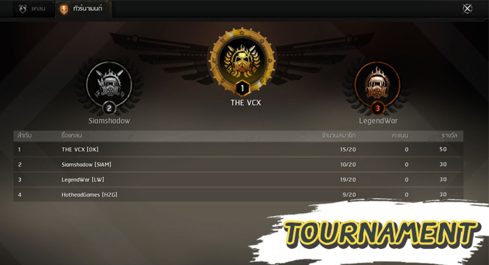 อันดับแคลนในทัวร์นาเมนต์ ><