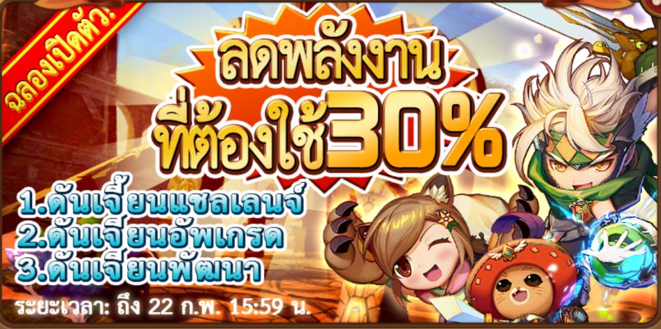 รายละเอียดกิจกรรม - ลดการใช้พลังงานลง 30% ในดันเจี้ยนต่อไปนี้ 1.ดันเจี้่ยนแชลเลนจ์ 2.ดันเจี้ยนอัพเกรด 3. ดันเจี้ยนพัฒนา