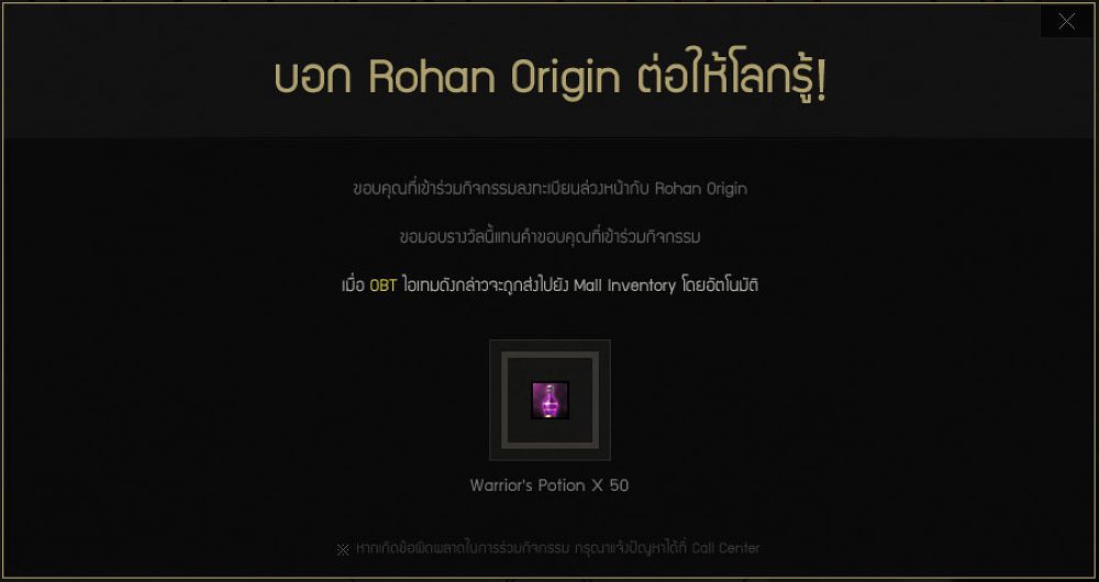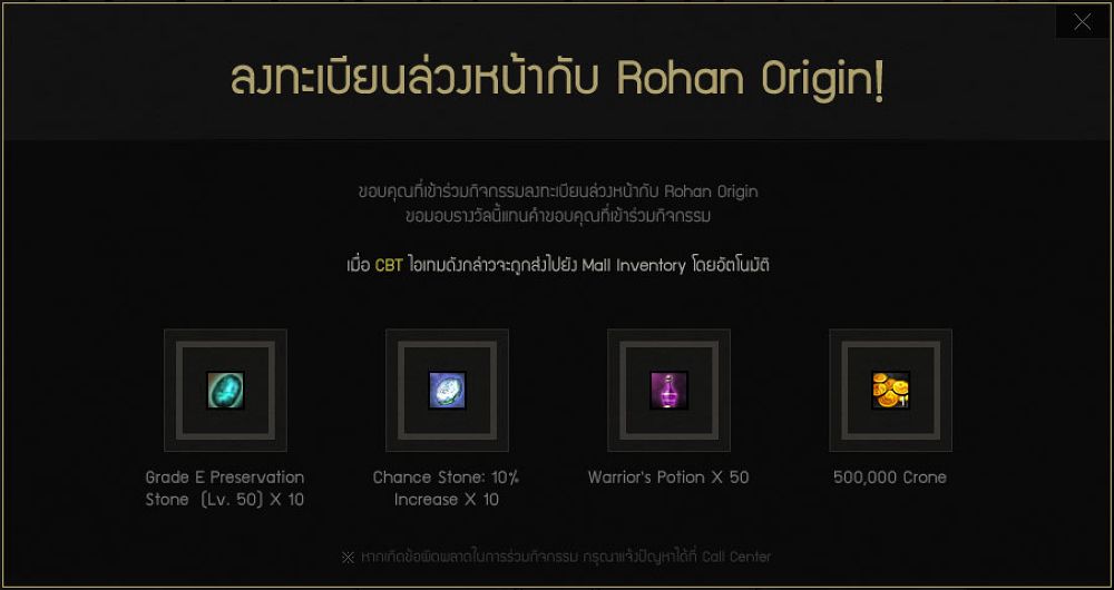 3. กด Likefanpage Rohan Origin รับรางวัลในช่วง Open Beta ดังนี้