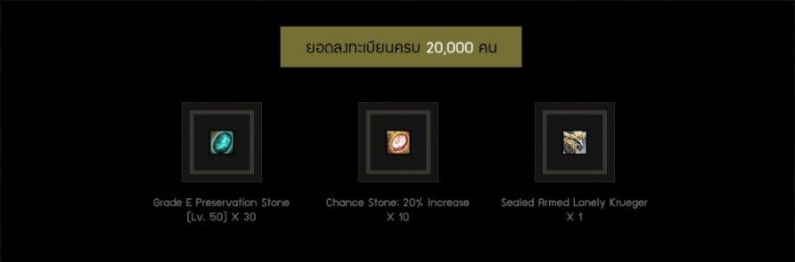 1. ยอดผู้เล่นลงทะเบียนถึง20,000 คน รับรางวัลในช่วง Closed Beta ดังนี้