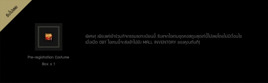 1. เพียงแค่ลงทะเบียนล่วงหน้า ก็จะได้รับรางวัลไปใช้ในช่วง Closed Beta ดังนี้