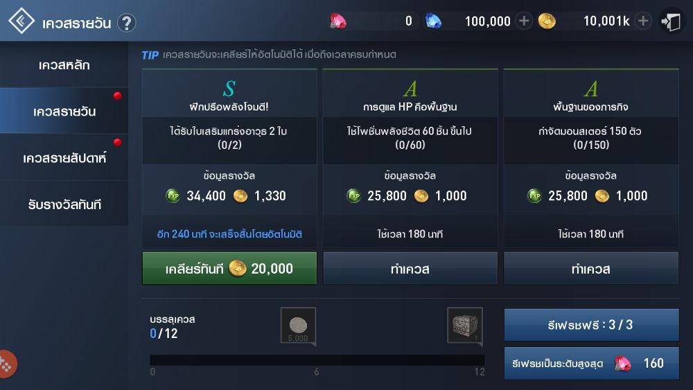 Tip 1. เคลียร์เควสรายวัน,เควสรายสัปดาห์ และม้วนเวคส!