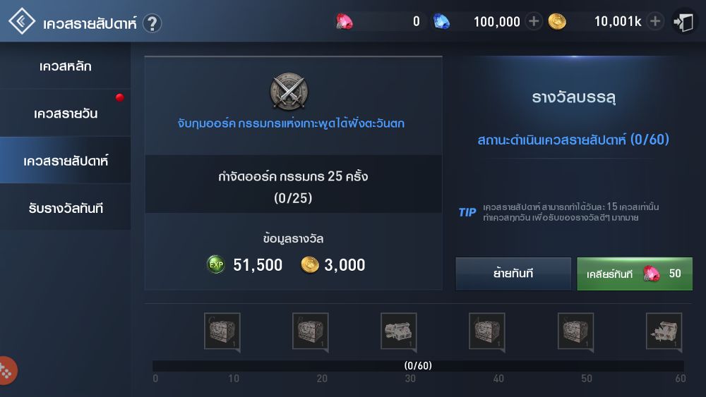 เควสรายสัปดาห์ (เคลียร์เควสรายสัปดาห์ให้ครบทั้งหมด)