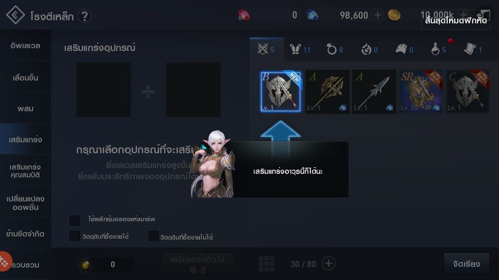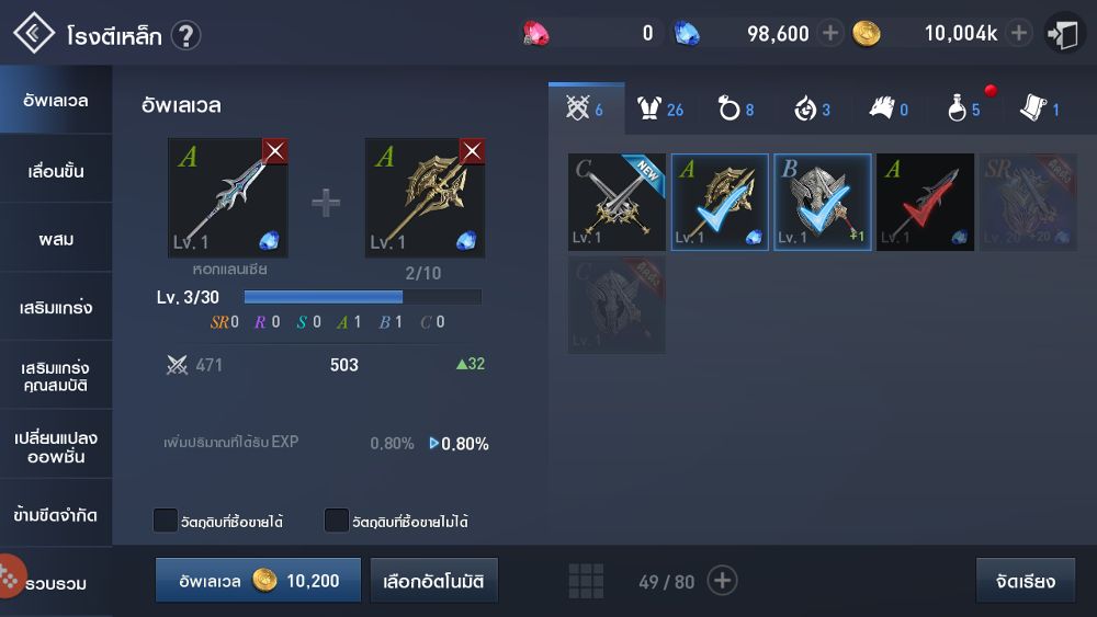 เลเวลอัพ /ผสม / อัพเกรดอุปกรณ์