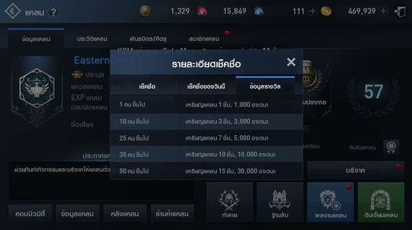 ของรางวัลสำหรับเช็คชื่อแคลน