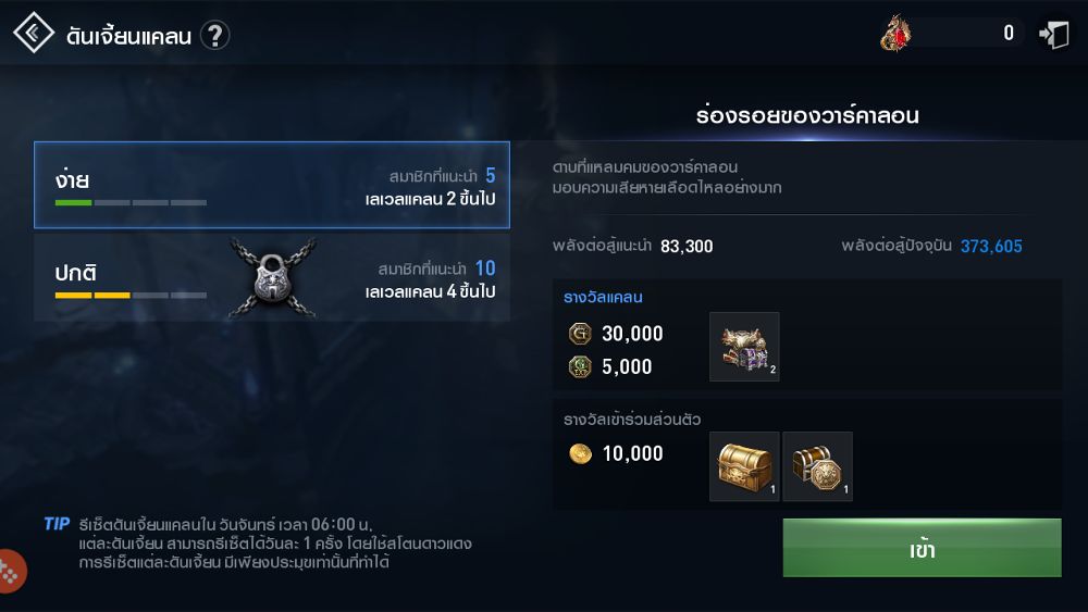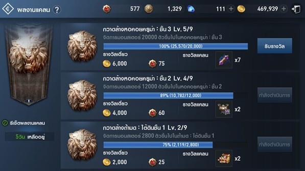 ภารกิจของกลุ่มแคลนที่ต้องร่วมมือกันฝ่าฟันไปกับเหล่าสมาชิกเพื่อเคลียร์ดันเจี้ยนแคลนพร้อมรับอุปกรณ์ระดับสูงได้เลยส่วนนี้เป็นส่วนที่สำคัญมากสำหรับคนที่ยังไม่มีอุปกรณ์ระดับสูง ๆ และสามารถใช้สโตนดาวแดงในการรีเซตดันเจี้ยนแคลนเพื่อลงเล่นใหม่ได้ด้วย (รับอุปกรณ์ระดับสูงได้เลยในดันเจี้ยนแคลน)