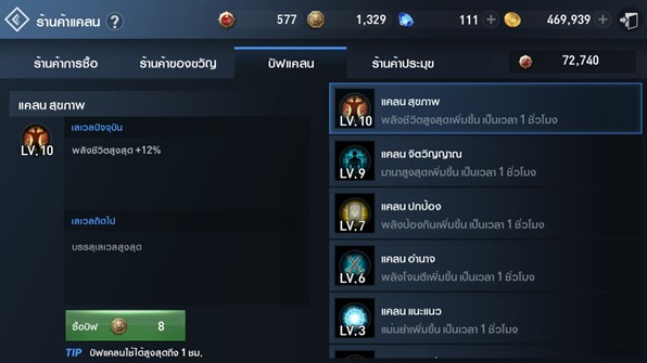 บริจาคของต่างๆ ให้แก่แคลน เพื่อรับเหรียญแคลน โดยเหรียญแคลนนั้นสามารถใช้ซื้อสิ่งของสำคัญ ๆเช่น บัฟแคลน, น้ำยาอิลิกเซอร์ และหินสะกดวิญญาณซึ่งสามารถซื้อได้ในร้านค้าแคลน อย่าลืมกดบริจาคทุกครั้งที่มีเงินพอหรือพอมีบริจาค เพื่อรับของรางวัล และเพื่อช่วยเหลือแคลน (ซื้อไอเทมสำคัญๆได้ด้วยเหรียญแคลน)