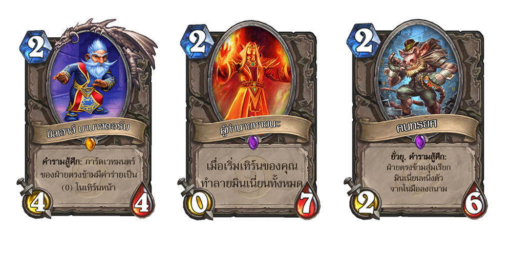 • เอฟเฟ็กต์ เรียกการ์ดมินเนี่ยนที่มีค่าร่าย 2 แต้มลงบนสนามของฝั่งตรงข้าม