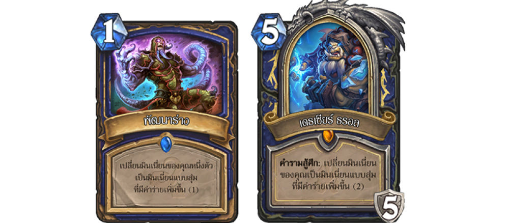 สำหรับคนเล่นสาย Transform หรือพัฒนาร่าง จะใช้การ์ดพัฒนาร่าง ที่มีเอฟเฟ็กต์เปลี่ยนมินเนี่ยนหนึ่งตัวเป็นมินเนี่ยนแบบสุ่มที่มีค่าร่ายเพิ่มขึ้น 1แต้ม ก็สามารถเปลี่ยนจากมินเนี่ยนค่าร่าย 5 แต้มในสนามเปลี่ยนมาเป็น เอททินผู้หิวโหยได้ หรือจะใช้เป็นเดธเซียร์ ธรอล การ์ดที่มีสกิลคำรามสู้ศึกสามารถเปลี่ยนมินเนี่ยนที่อยู่ในสนามเป็นมินเนี่ยนแบบสุ่มที่มีค่าร่ายเพิ่มขึ้น 2 ก็ได้