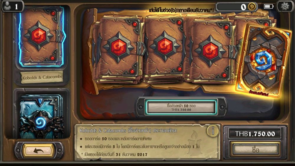 ในชุด Kobolds & Catacombs มีแพคเกจพิเศษเมื่อสั้งซื้อล่วงหน้า จะได้รับแพคการ์ดเพิ่ม 10 แพค รวมของเดิม 40 แพคเป็น 50 แพค รวมไปถึงยังได้หลังการ์ดลายใหม่ซึ่งมีขายเฉพาะในแพทช์นี้เท่านั้น สนนราคาอยู่ที่ 49.99 USD