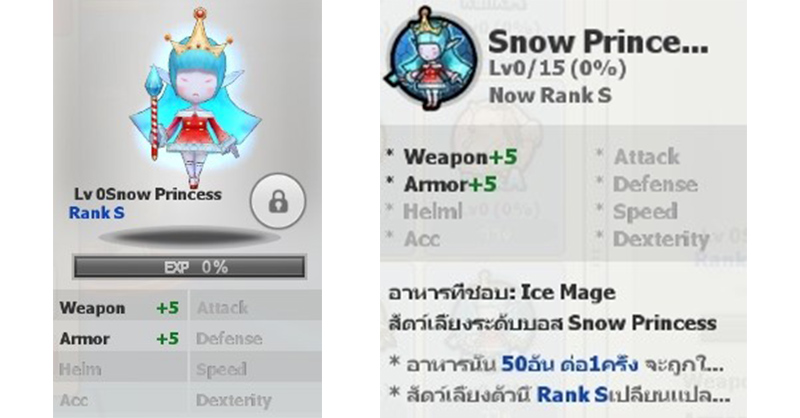 Snow Princess Pet (Rank S): สัตว์เลี้ยงระดับ S ที่เพิ่มสเตตัสพิเศษ Weapon และ Armor นั่นเอง