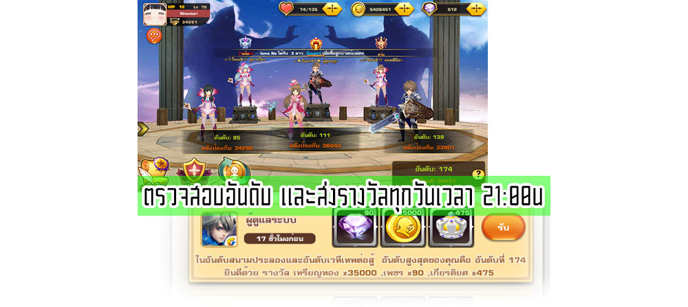 • อันดับที่ 11-50 : (สูงสุด) 200เพชร + 70000เหรียญทอง +  เกียรติยศ 300แต้ม