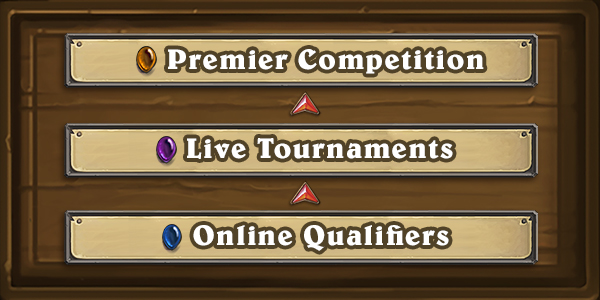 Hearthstone จะจัดการแข่งขันทัวร์นาเมนท์รอบคัดเลือกนับร้อยรายการ โดยจะเน้นการแข่งขันทางออนไลน์เป็นหลัก พร้อมกับร่วมมือกับพันธมิตรแพลตฟอร์มการแข่งขันจากภายนอก การแข่งขันรอบคัดเลือกครั้งแรกจะเริ่มต้นในฤดูใบไม้ผลิ และการแข่งขันเหล่านี้จะไม่มีการล็อคภูมิภาค นั่นหมายความว่าผู้เล่นจากทุกที่ทั่วโลกจะสามารถเข้าร่วมการแข่งขันได้ตามเวลาที่สะดวก ผู้ที่ชนะรอบคัดเลือกจะได้สิทธิเข้าร่วมการแข่งขันระดับถัดไป